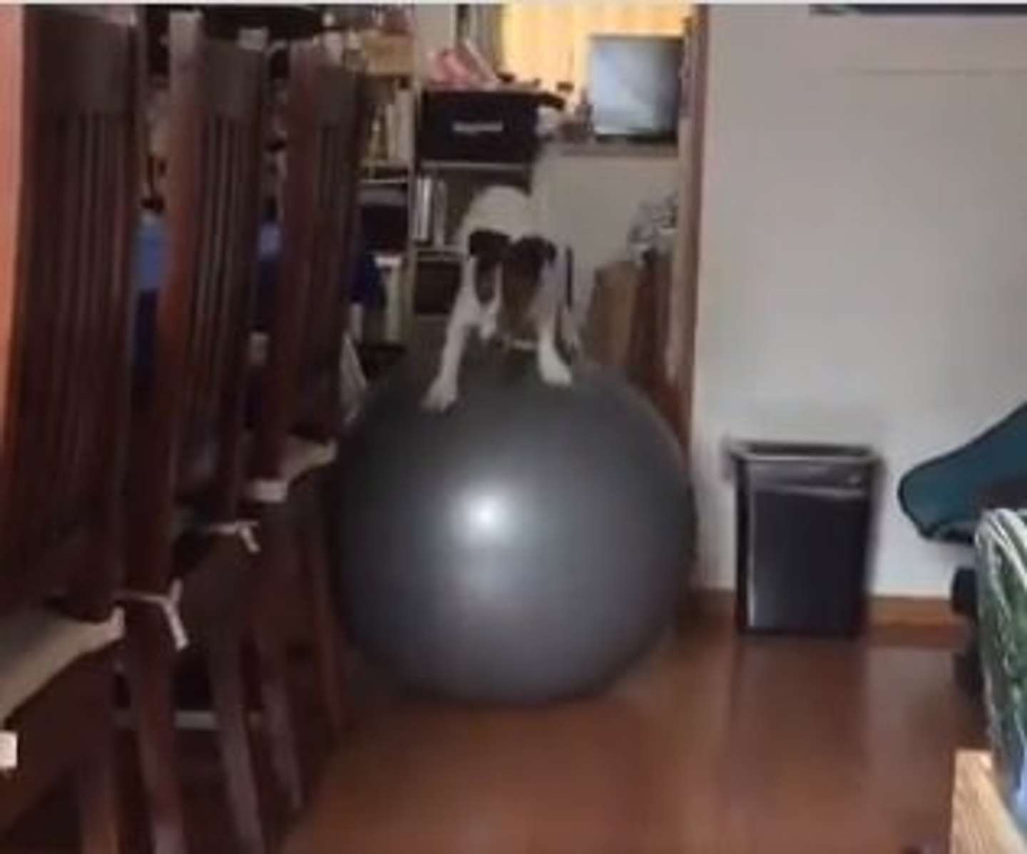 完全に乗りこなしてる...! 自由自在にバランスボールを操るワンコに注目→いったいナニモノ?飼い主に聞いた