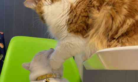 @Hachicottonさんによると、アポロくんはもう一匹の猫ちゃんがキャットタワーから降りてきた所を見ているそうだ。