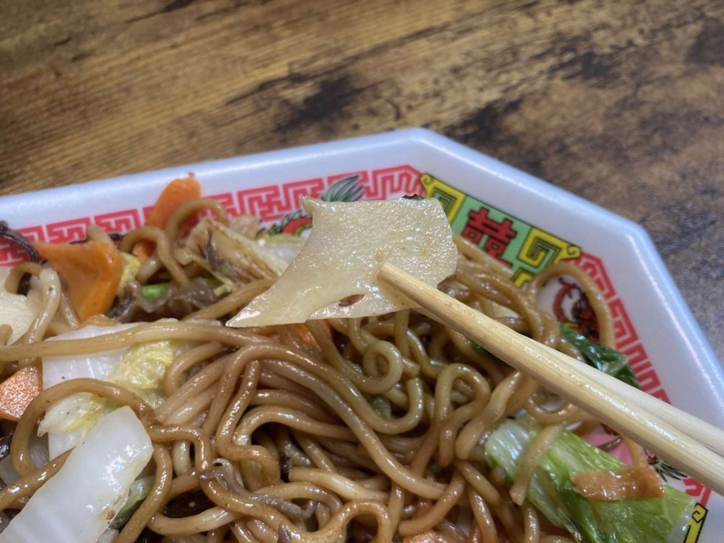 こちらはたけのこ。相変わらず小さいですが、存在感抜群の触感です。個人的に、上海焼きそばはこれが無いと始まりません。