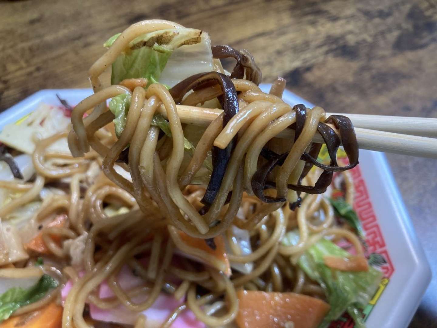 キクラゲやニンジンも麺に絡み、見事なハーモニーを生んでいます。最後は勢いのまま完食。