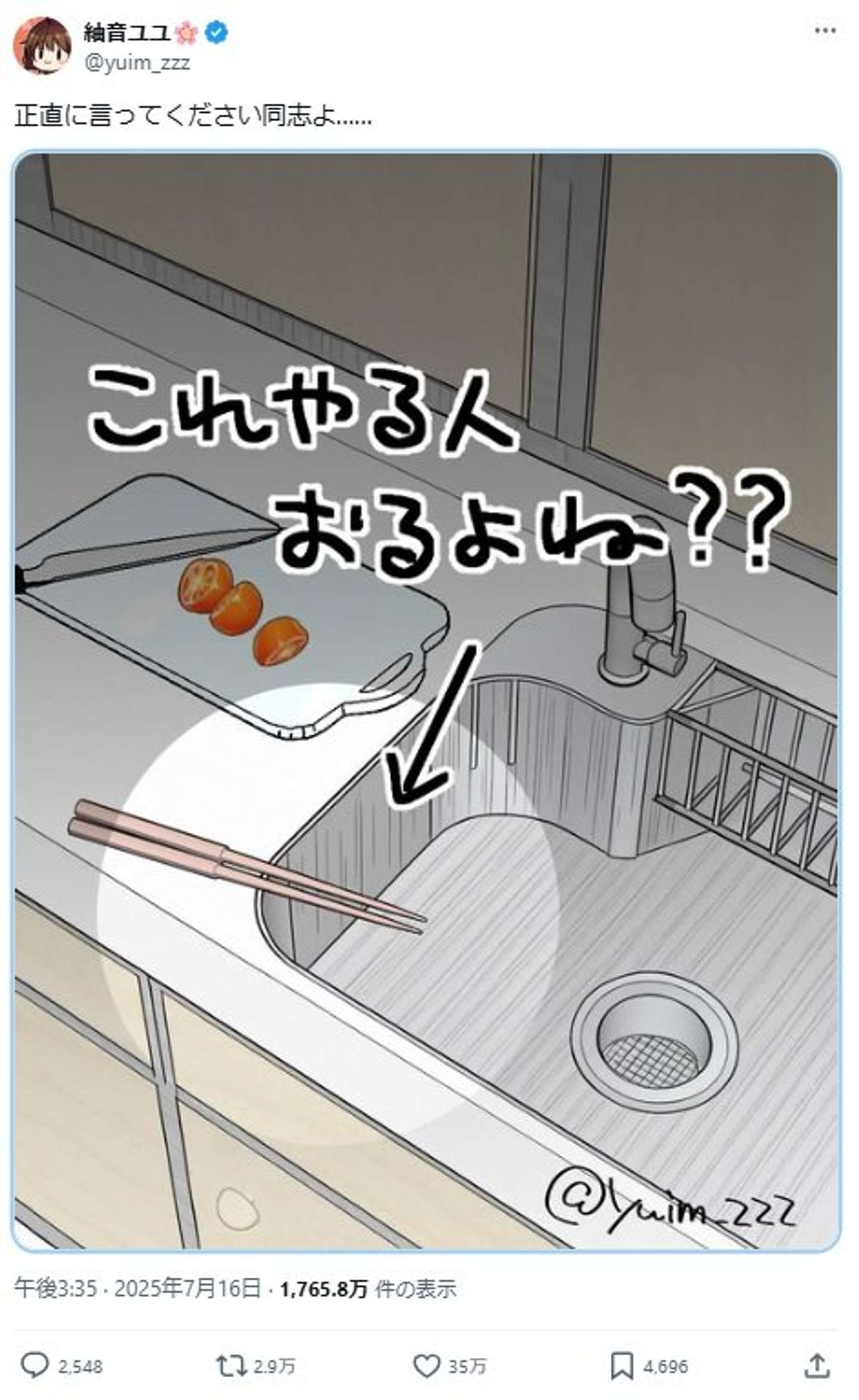 「これやる人、おるよね?」 台所での〝ずぼら一コマ〟に35万人共感「何が悪いのか分からない」
