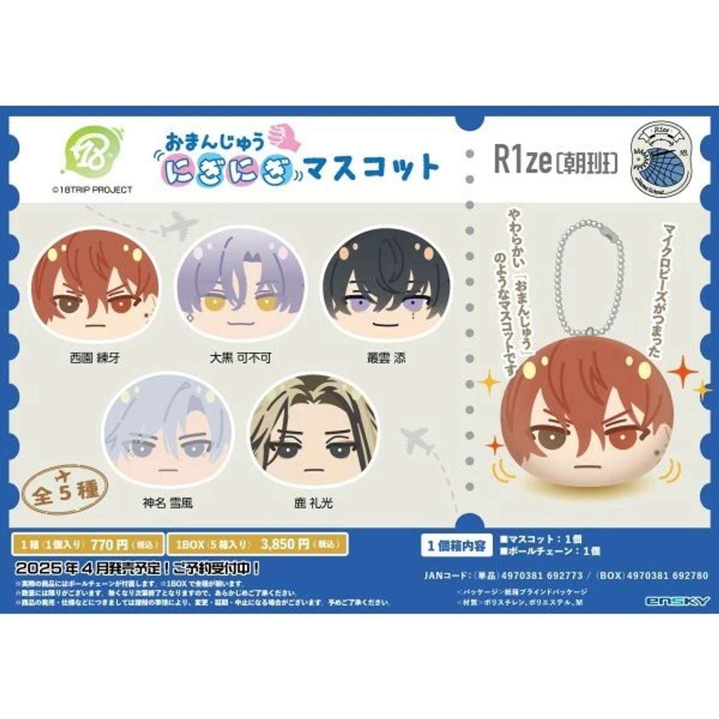 18TRIP 18TRIP おまんじゅうにぎにぎマスコット R1ze(朝班) 【1BOX 5箱入り】