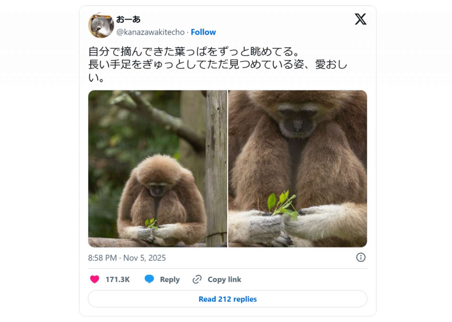 「かわいい、かわいい、かわいい!!!」 金沢動物園で激写された〝ぎゅっとするサル〟に17万人もん絶
