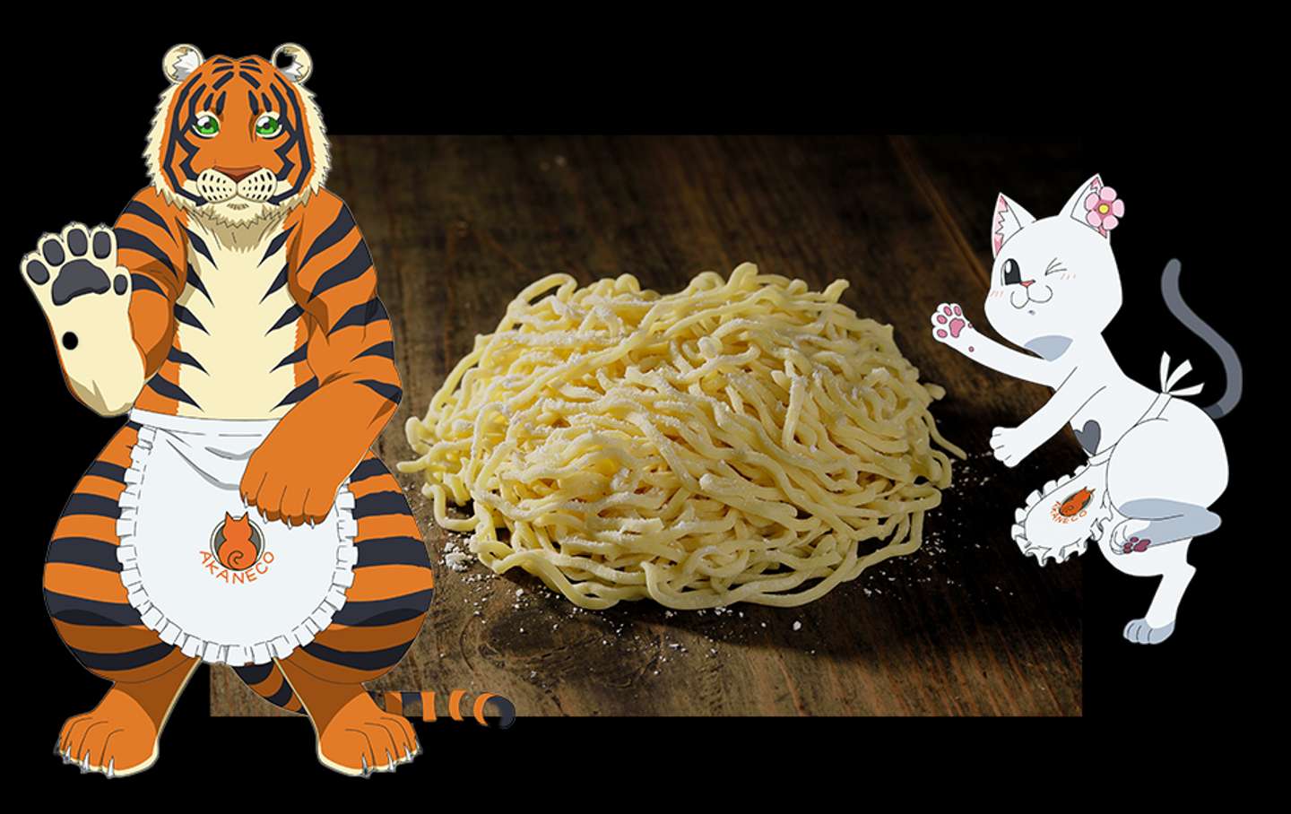 生ラーメンは、「ラーメン赤猫」の製麺担当の虎・クリシュナが打った"虎打麺"風に縮れをきかせたコシの強い熟成麺。細心の注意を払っており、「猫毛・髪の毛の混入もございません」とのこと。
